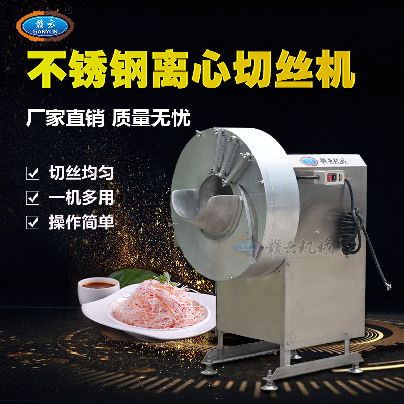 離心切絲機采用201不銹鋼板材并結(jié)合歐美現(xiàn)代小型切絲機種設(shè)計而成,可根據(jù)物料定向切割,所切絲狀和片狀基本與物料本身切面長度一致,該機可定做切割尺寸范圍1-6mm,出廠默認尺寸為2mm規(guī)格切絲標準,贛云牌定向離心切絲機500型,離心桶外直接約500mm,時產(chǎn)可達800kg每小時,是中央廚房凈菜加工設(shè)備之球根類離心切絲切片設(shè)備之一,也是生姜,鮮筍切絲切片設(shè)備。